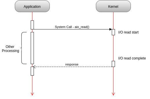 - 비동기 방식이므로, 입출력 함수를 통해 작업을 예약해 놓고 우리는 다른 작업을 수행할 수 있다.