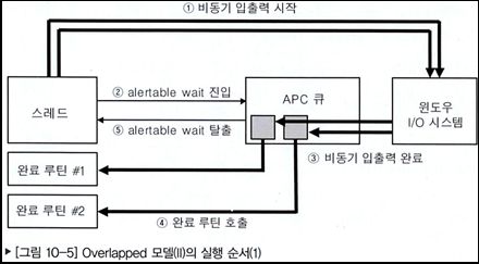 콜백(Completion Routine) 기반 Overlapped 모델의 흐름을 요약하면 아래와 같다.