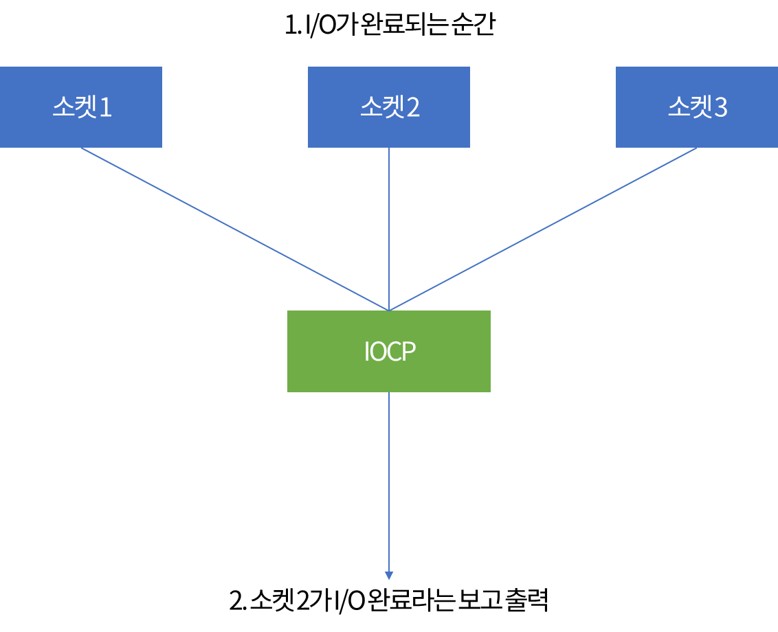 소켓이 1만 개 있어도 IOCP는 이 중 실제로 I/O가 완료된 소켓에 대해서만 이벤트를 반환하므로, 모든 소켓에 대해 반복문을 돌지 않아도 된다.